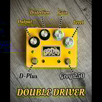 The Double Driver is two independent overdrive distortions in series. The front end is based on the ‘77 “Grey” 250 Overdrive, followed by the classic Distortion Plus. A pair of vintage NOS metal can IC’s are at the heart of this stacked dirt machine.