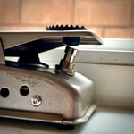 I love these unique sewing machine foot pedals from the 50's and 60's. Seems fitting to house a vintage circuit in an enclosure from the same era. I modified the foot pedal by adding a little rubber bushing under the step plate. This has two functions. Reducing the gap between the switch and the step plate for better response, and it just feels better to turn on. I also added a grip pad so you don't slip in the middle of your gig ;)