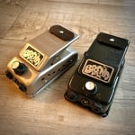 This is a point to point pre-amp boost based on the 1950’s Hofner Pre-amp. Back in those days, guitar amps weren’t as available as today, so people would plug their guitars into old tube radios. Only problem was the signal impedance was mismatched, resulting in a weak and muddy sounding guitar tone. The Hofner Pre’s were designed to correct this signal loss when playing through household tube radios. Later, guitar players discovered that this simple little pre-amp boost would drive a guitar tube amp into glorious overdrive.